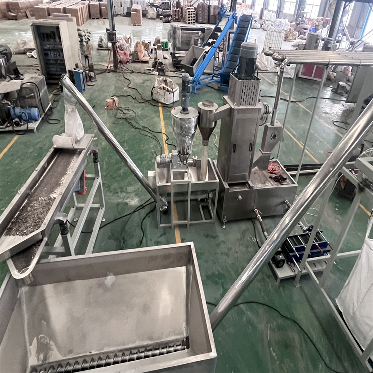 系统组成:一台完整的双螺杆造粒机组通常包含主机、减速箱、软水冷却系统、抽真空系统、液压换网系统以及切粒辅机等部分
